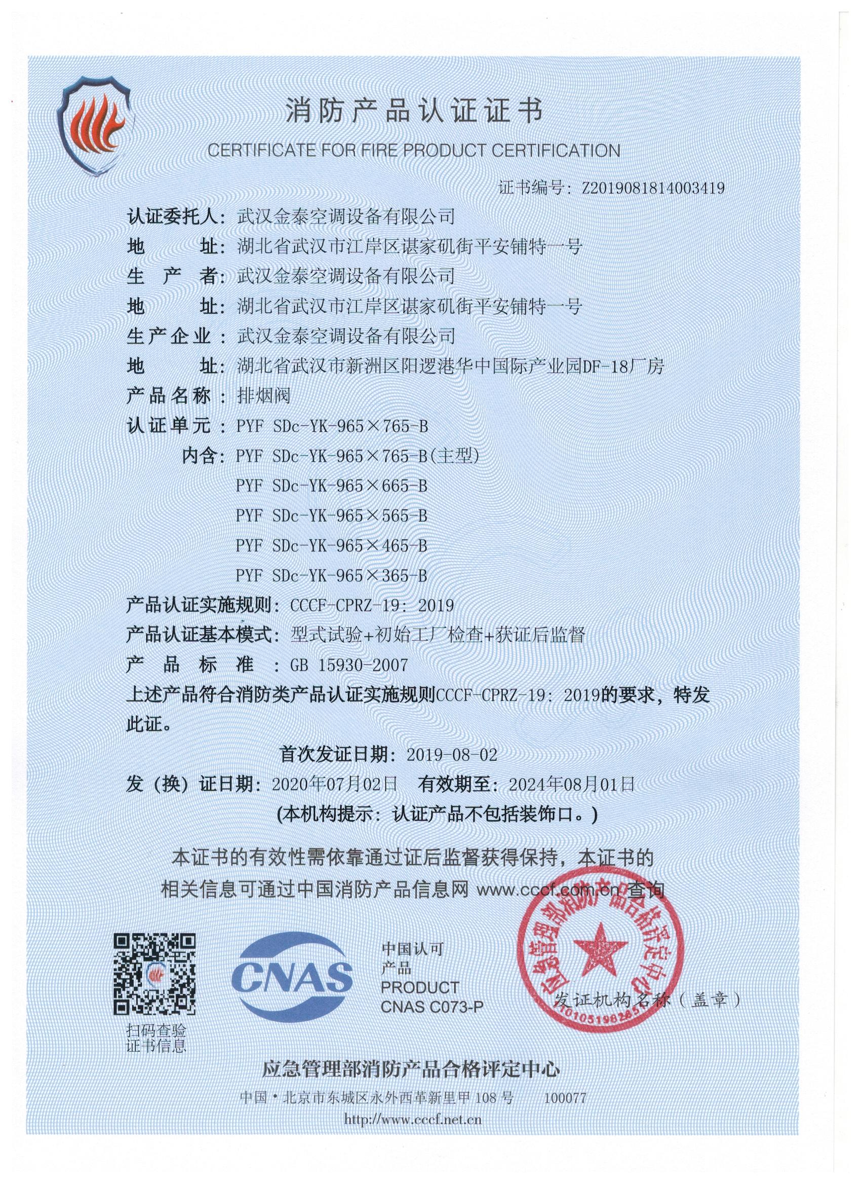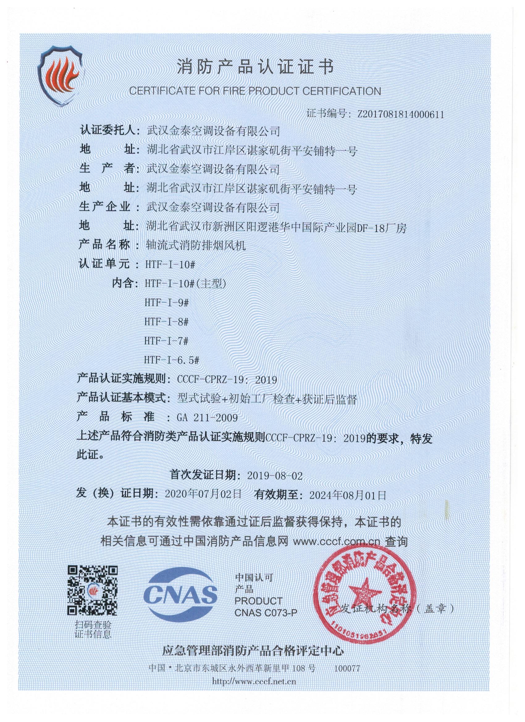 武漢金泰空調(diào)設(shè)備有限公司 是國(guó)內(nèi)長(zhǎng)期專注于民用風(fēng)機(jī)、工業(yè)風(fēng)機(jī)領(lǐng)域的標(biāo)桿企業(yè):專業(yè)生產(chǎn)消防排煙風(fēng)機(jī)系列、排煙防火閥系列、一般通風(fēng)機(jī)系列(軸流式、離心式、屋頂式、壁式、隧道式、射流式)、風(fēng)口、風(fēng)管等消防及通風(fēng)設(shè)備。產(chǎn)品經(jīng)公安部消防產(chǎn)品合格評(píng)定中心評(píng)定符合消防產(chǎn)品CCC標(biāo)準(zhǔn);經(jīng)中國(guó)合格評(píng)定國(guó)家認(rèn)可委員會(huì)認(rèn)證的檢驗(yàn)所檢驗(yàn)合格;經(jīng)國(guó)家防火建材質(zhì)量監(jiān)督檢驗(yàn)中心(四川中心)火燒實(shí)驗(yàn),耐火性能達(dá)標(biāo)。